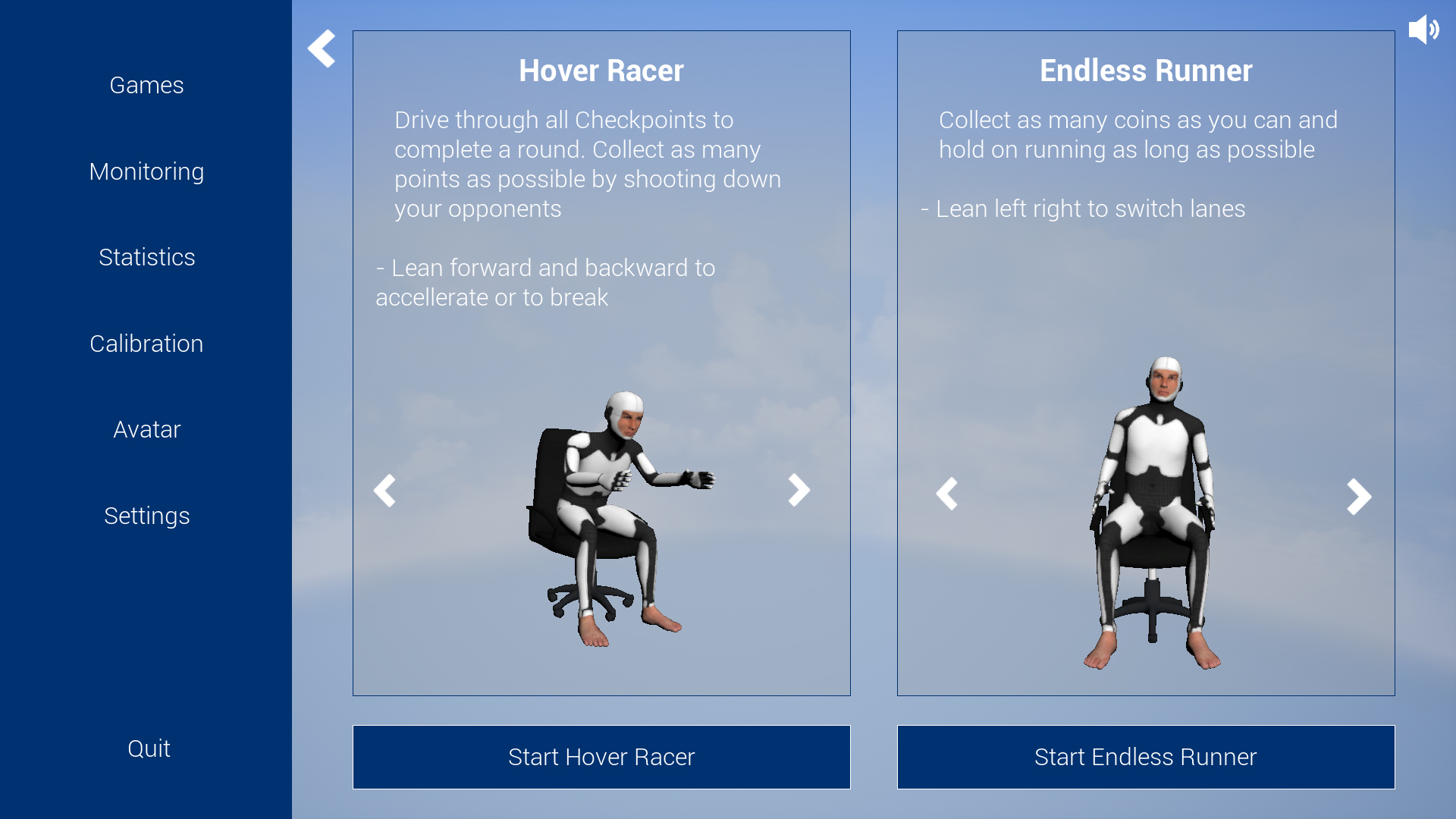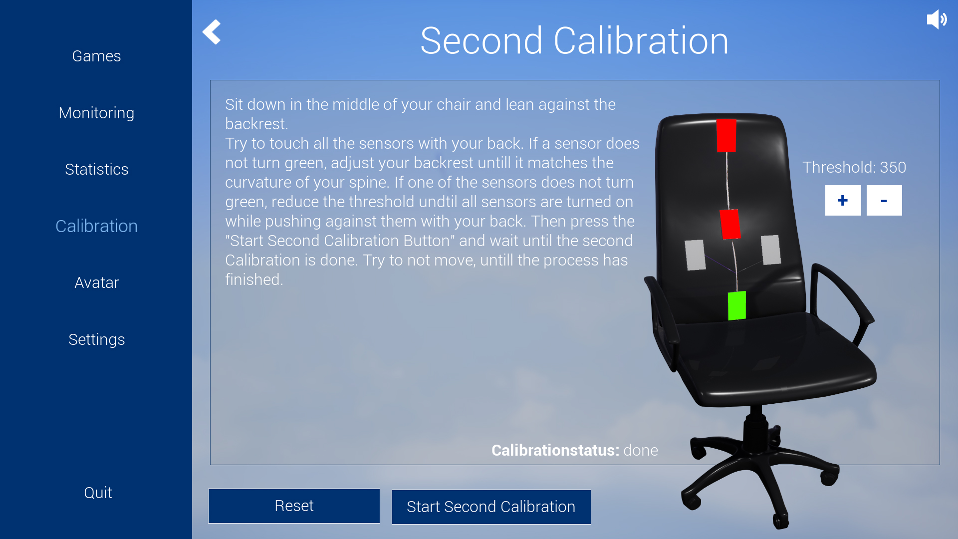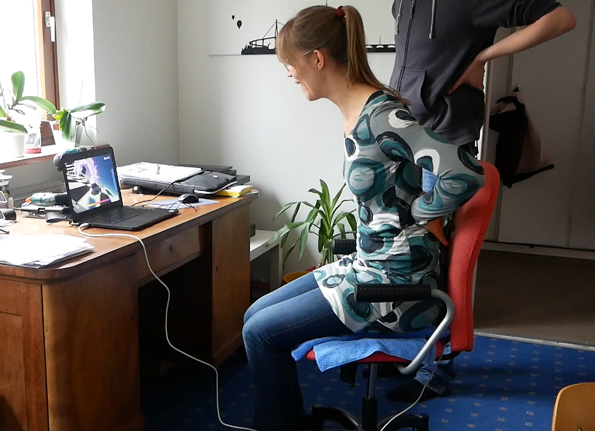 For this reason, my master’s thesis addresses the implementation of an input device that, in combination with an office chair, is capable of determining a person’s sitting posture in real time. The sensor data is processed in specially developed software and can provide the user with information about both their current and past sitting behavior. Furthermore, the system can be used to perform posture exercises in a playful manner, which are intended to help mobilize the body. The hardware includes, among other things, four load cells that determine the center of gravity of a seated person. With their help, a prediction of the sitting posture can be made, while the sensor data can simultaneously be used as input for various games.
